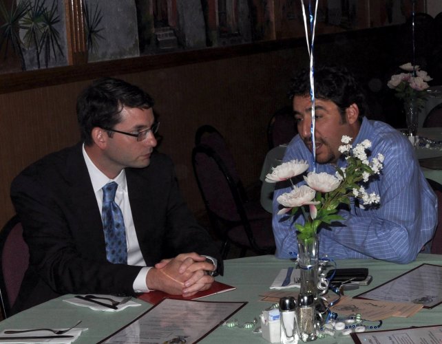 Dr. Lee Rogers talks with prospective constituent