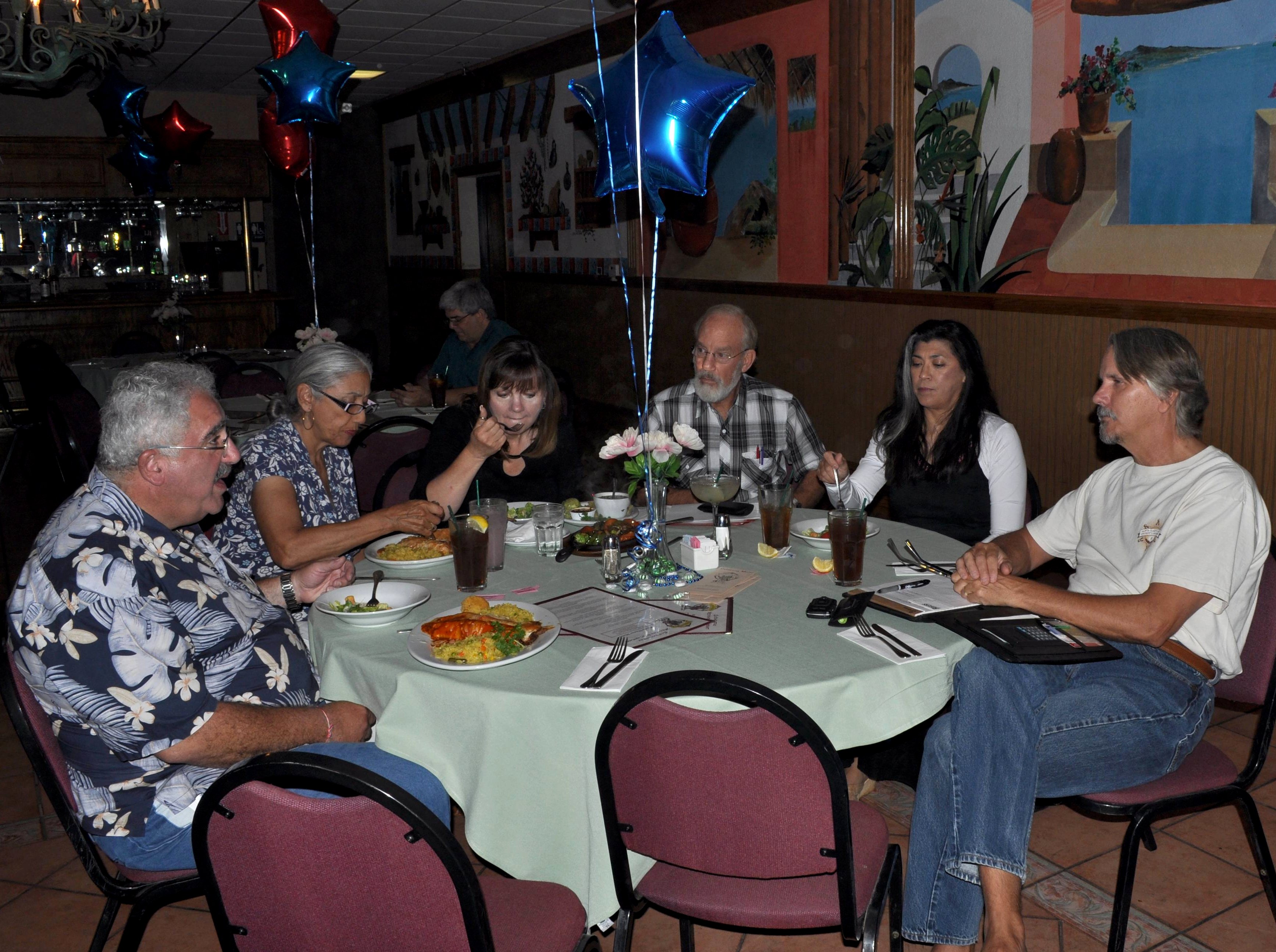 People enjoy dinner before meeting