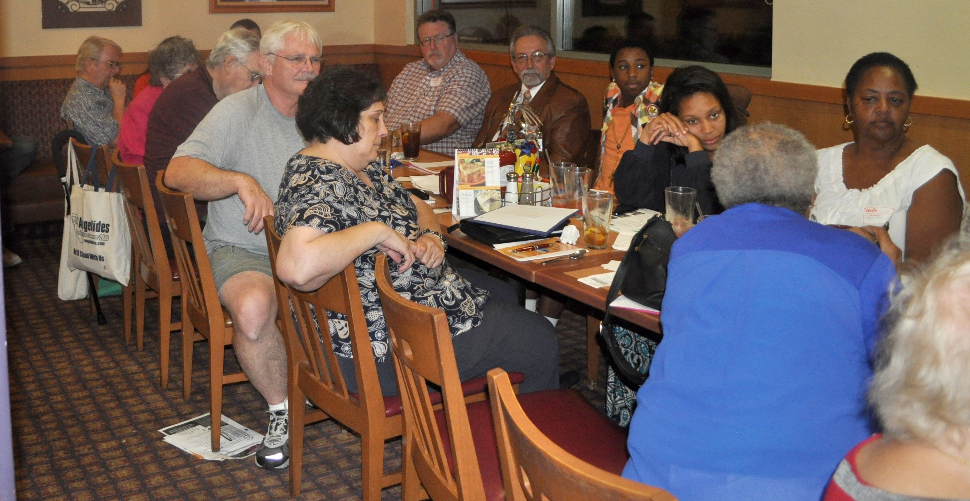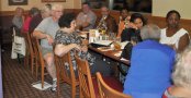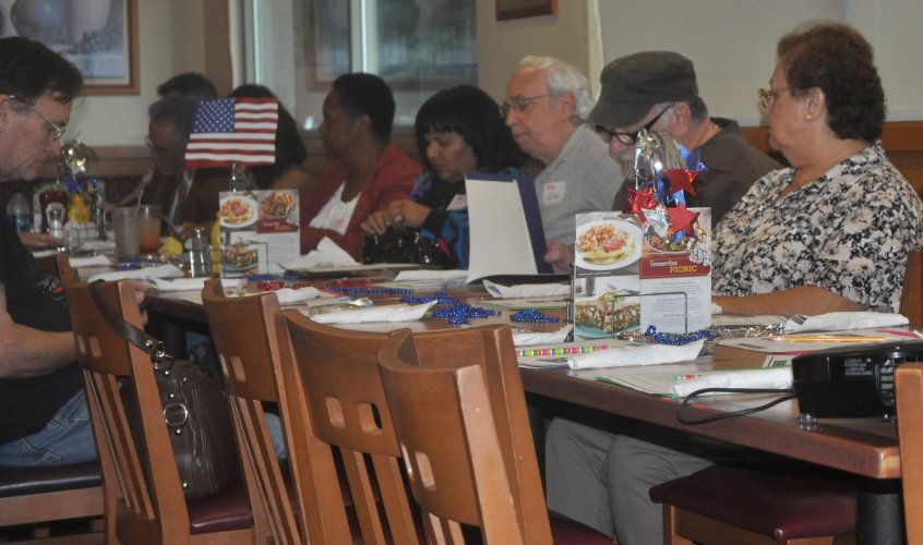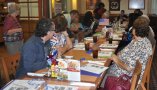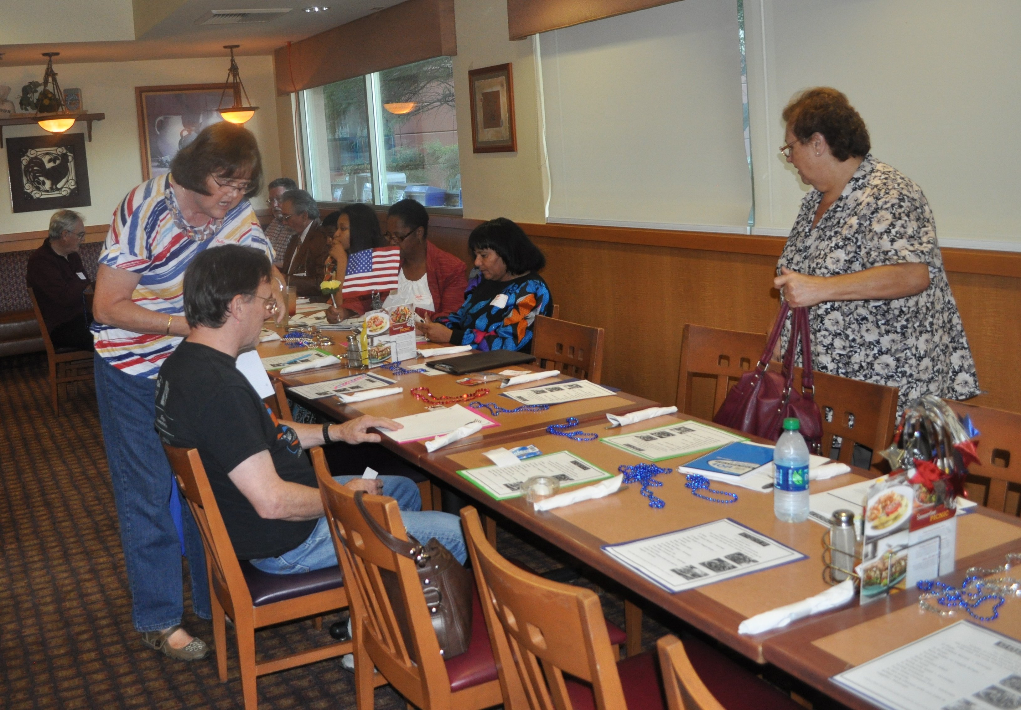 | |  Mamie Nelson (in red jacket reviews the suggested menu, while her niece signs in Mamie Nelson (in red jacket reviews the suggested menu, while her niece signs in