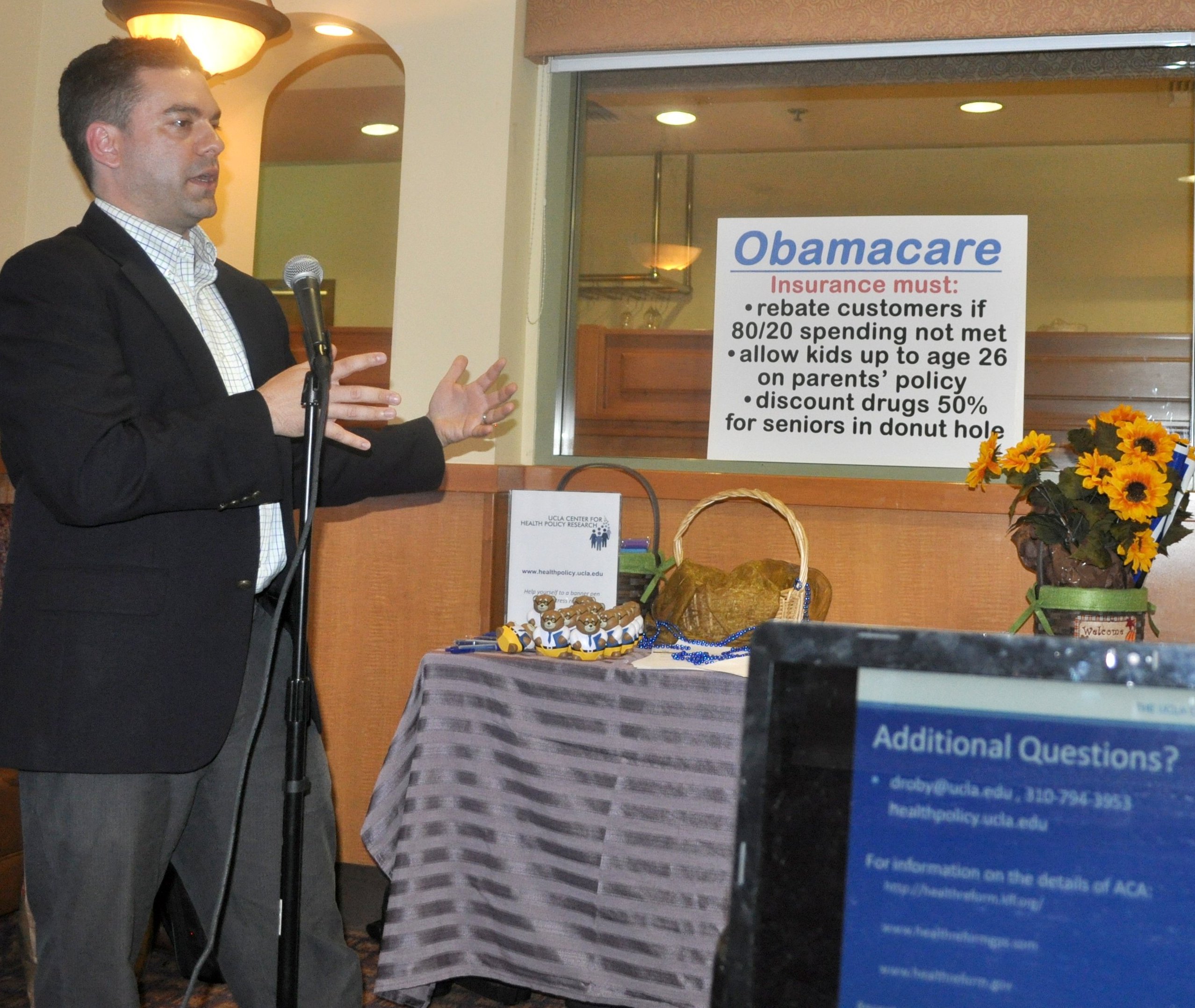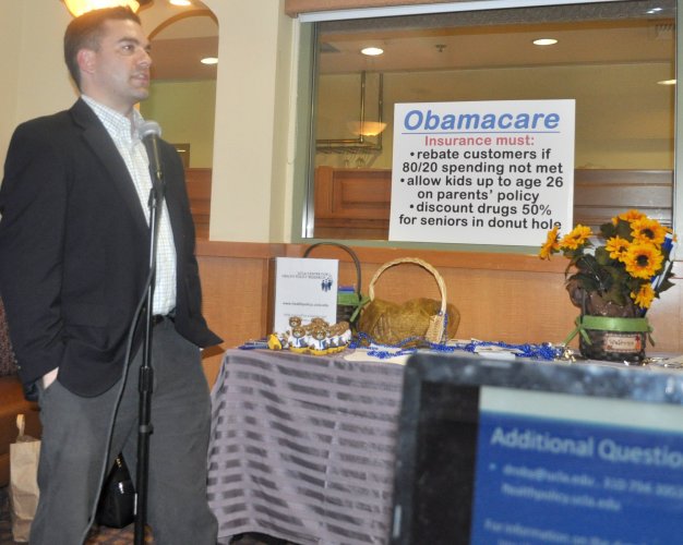 | |  Dylan Roby, PhD was the keynote speaker for the evening helping us seek answers to many questions regarding Obamacare. We thank him for joining our inquisitive group. Dylan Roby, PhD was the keynote speaker for the evening helping us seek answers to many questions regarding Obamacare. We thank him for joining our inquisitive group.