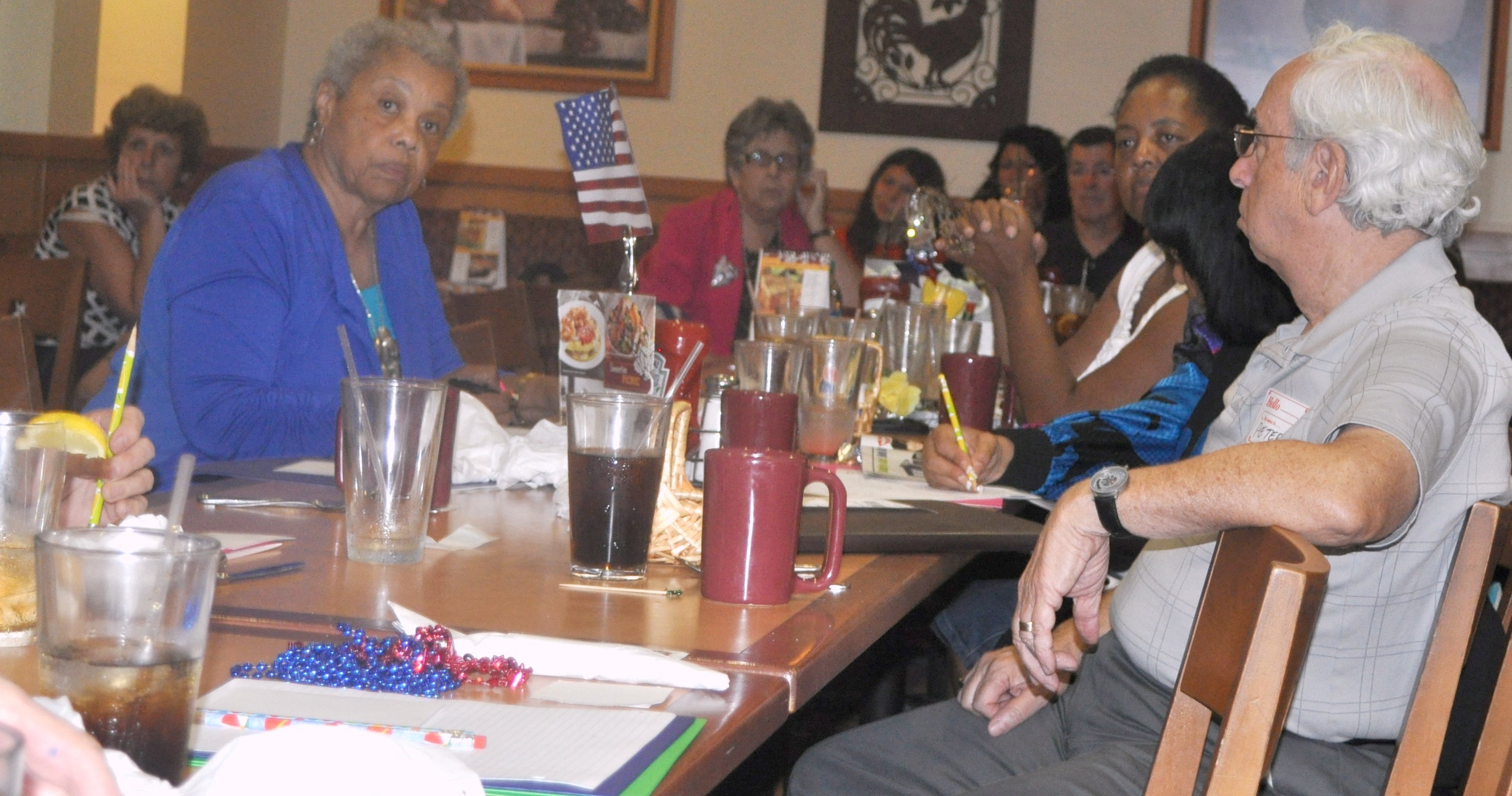 | |  Barbara (in blue top) listens to Dr. Roby's response to mental health advantages. Barbara (in blue top) listens to Dr. Roby's response to mental health advantages.