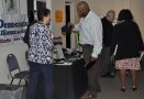 Folks milling around looking at the various promotional materials