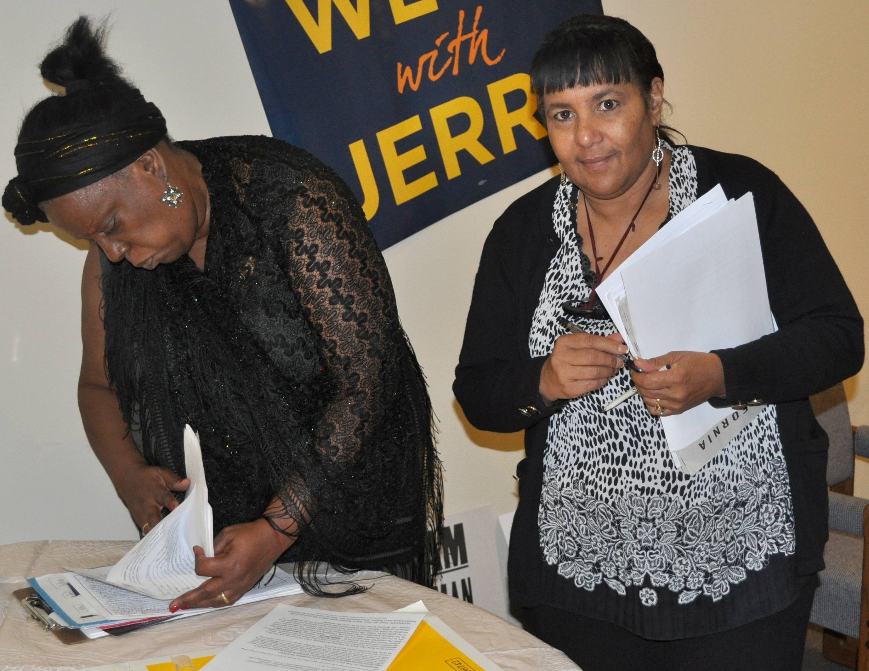 Mary Jane lays out campaign promotional materials