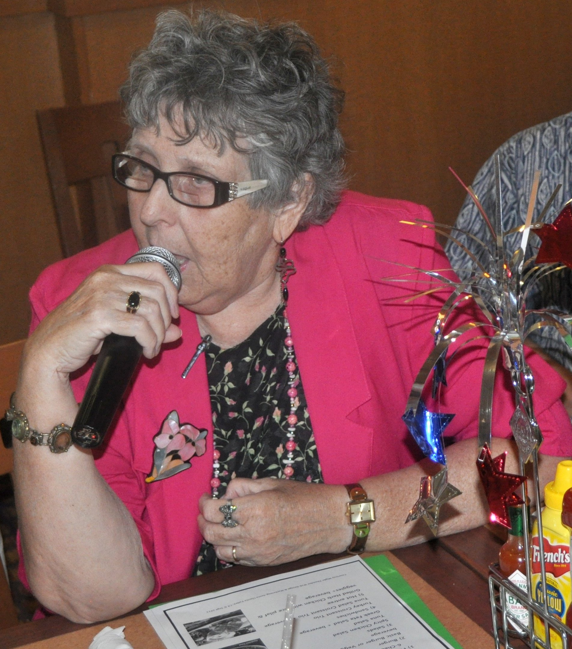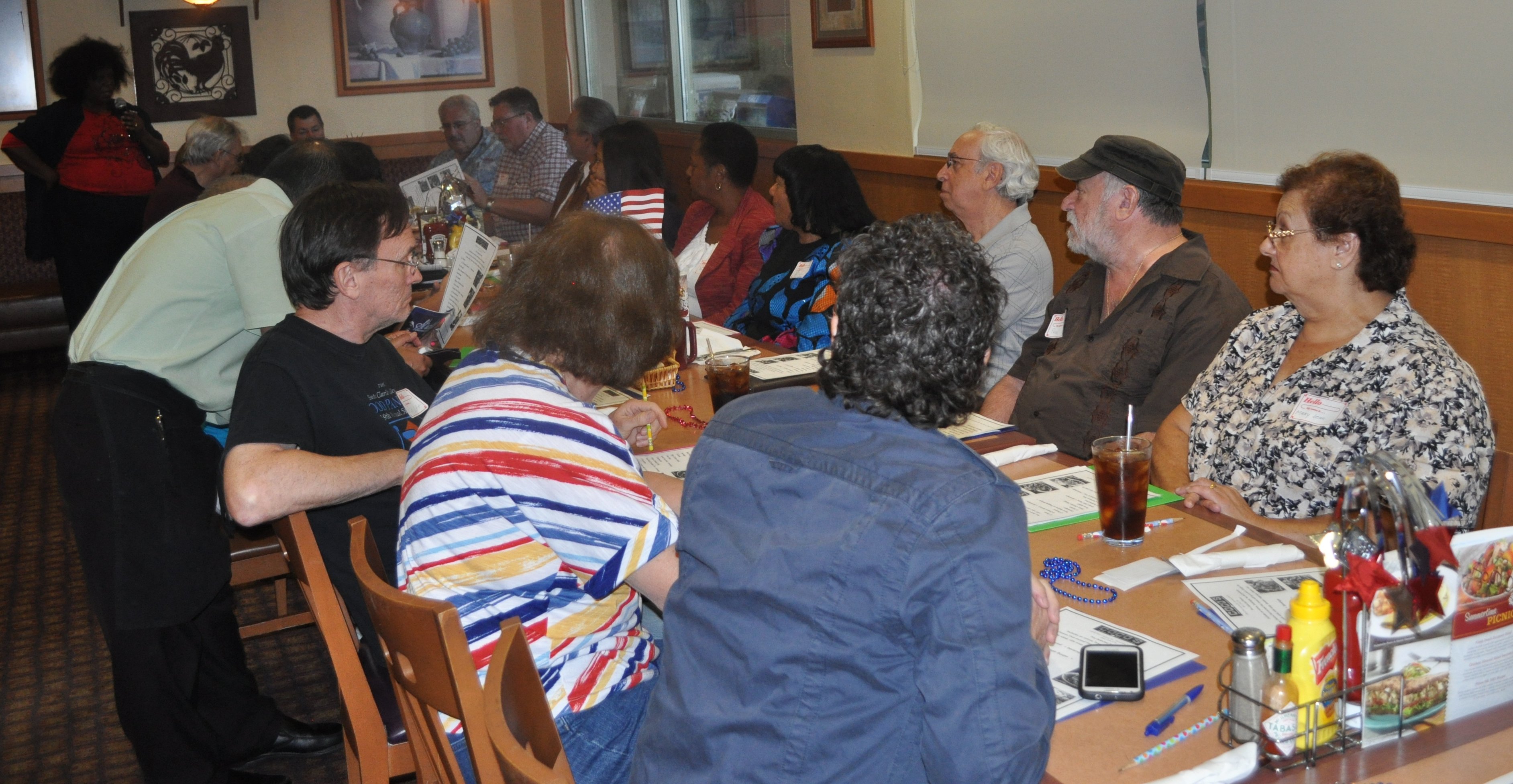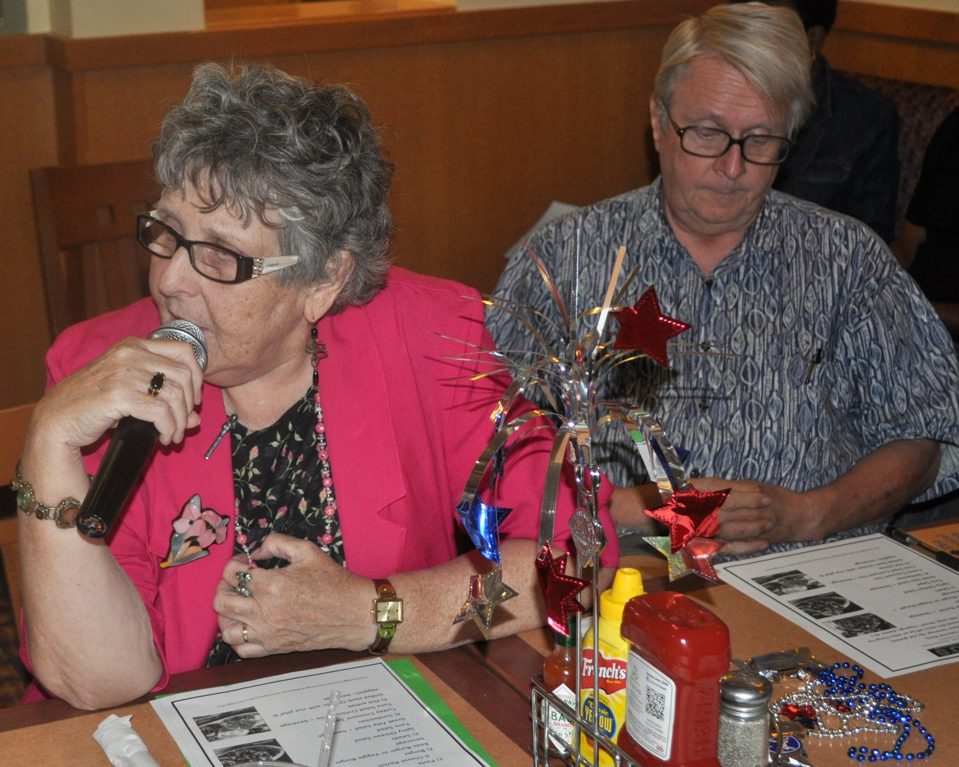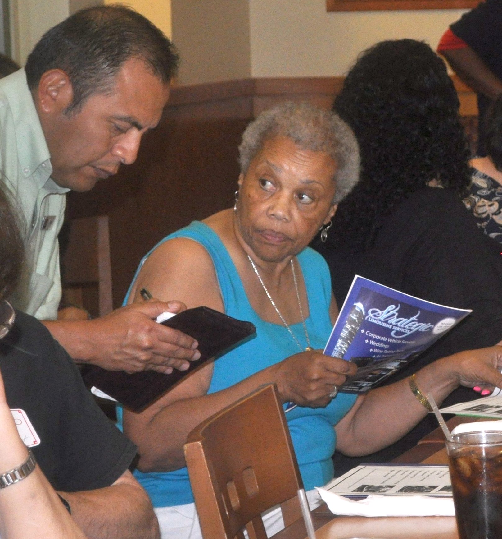 | |  Mamie Nelson (in red jacket reviews the suggested menu, while her niece signs in Mamie Nelson (in red jacket reviews the suggested menu, while her niece signs in