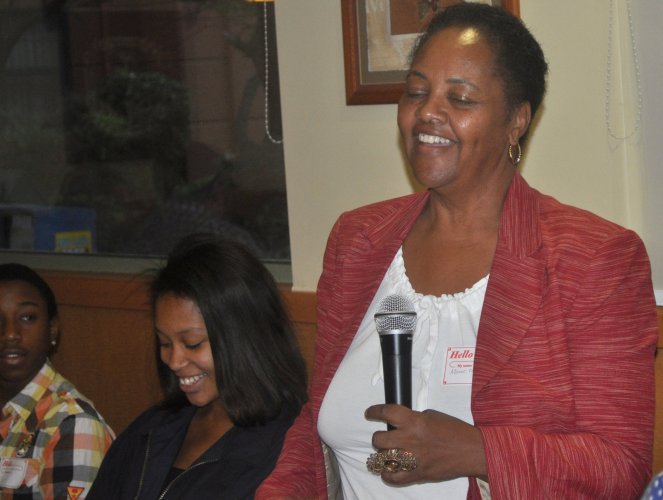 Minerva Williams emcees the program Minerva Williams emcees the program