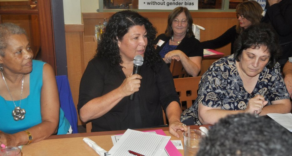 | |  SherryAn states that there is a need for women to become more united. Sandra Rosenthal Cattell looks on approvingly. SherryAn states that there is a need for women to become more united. Sandra Rosenthal Cattell looks on approvingly.