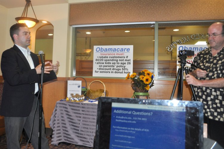 | |  Dylan Roby, PhD was the keynote speaker for the evening helping us seek answers to many questions regarding Obamacare. We thank him for joining our inquisitive group. Dylan Roby, PhD was the keynote speaker for the evening helping us seek answers to many questions regarding Obamacare. We thank him for joining our inquisitive group.