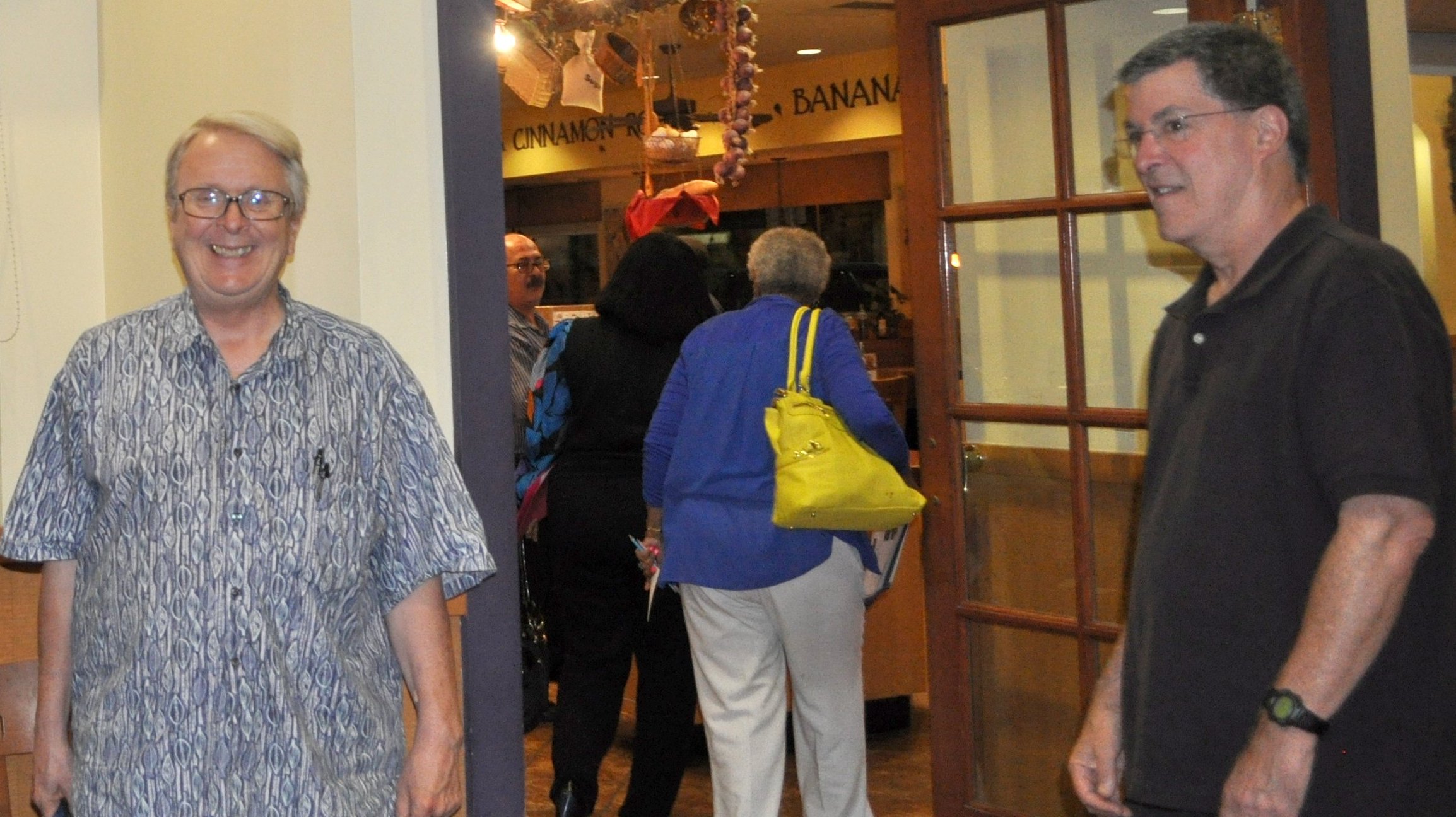 | |  Folks talking on the way out the door Folks talking on the way out the door