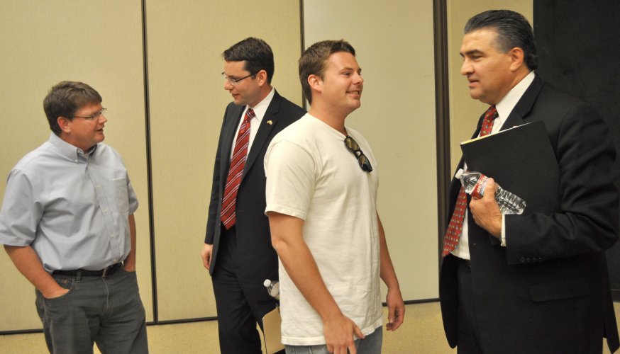 ![]() Audience taking a break between presentations ![]() Audience taking a break between presentations ![]() | ![]() Scott Wilk, Edward Headington ![]() Scott Wilk, Edward Headington ![]() | ![]() David Maron moderates the forum ![]() David Maron moderates the forum ![]() | ![]() Folks taking copious notes ![]() Folks taking copious notes ![]() | |||